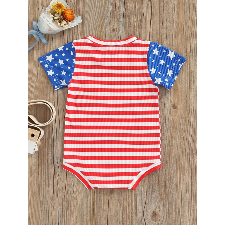 Genuiskids 4th Of July Newborn Baby Girl Boy Independence Day Romper Short Sleeves Star Print Stitched Stripe Summer Jumpsuit Outfits Walmart Com
